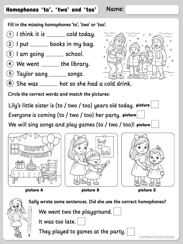 Homophones -to, too, two