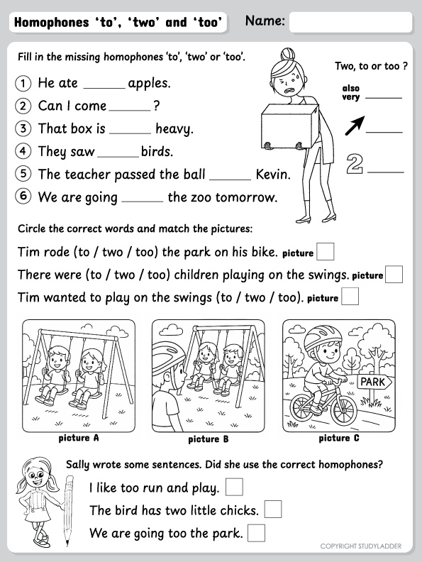 Homophones: to, two and too