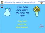 Samples: Comparing length. Comparing height. Comparing volume (empty to full). Comparing volume.