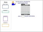Samples: Area using informal units. Area using square tiles. Area using informal units.