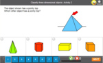 K.G.3 – Identify shapes as two-dimensional (lying in a plane, “flat”) or three-dimensional (“solid”).