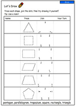 Samples: Sorting two-dimensional shapes. Quadrilaterals. Shapes - curved and straight sides. Shapes to fill a space.